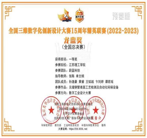 715日至16日,由科技部、工信部、教育部、中国科协等部门指导,国家制造业信息化培训中心、全国三维数字化技术推广与教育培训联盟(3D动力)、光华设计发展基金会等部门联合主办的全国三维数字化创新设计大赛15周年精英联赛(2022-2023)在南京信息工程大学落下帷幕。