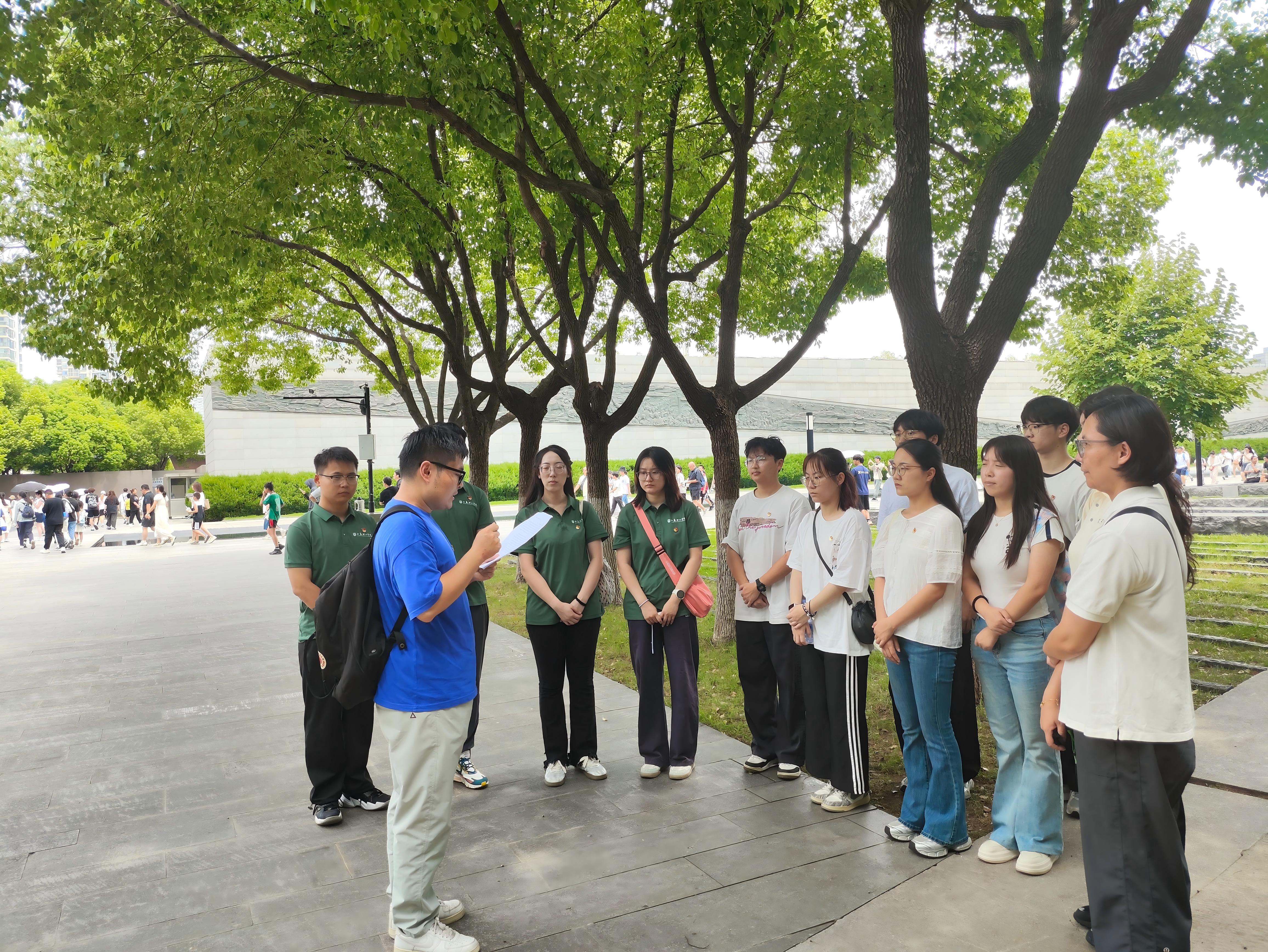 当天上午,全体人员怀着肃穆的心情走进侵华日军南京大屠杀遇难同胞纪念馆。馆内肃静凝重,斑驳的黑白影像定格着民族的苦难,泛黄的报刊文献铭刻着血泪的证言。在遇难者名单墙前,师生们久久驻足,凝视着墙上密密麻麻的姓名——每一个名字背后,都是一个鲜活生命的逝去。移步至和平广场,洁白的和平鸽雕塑振翅欲飞,与不远处“万人坑”遗址的肃杀景象形成鲜明对比,无声诉说着 “铭记历史,珍爱和平”的深刻内涵。